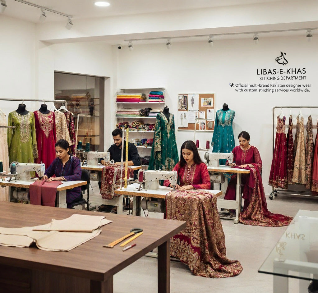 Experience the luxury of perfectly fitted Pakistani designer wear with our in-house stitching department. Our team of professional tailors transforms premium collections from Maria B, Afrozeh, Elan, and Baroque into bespoke masterpieces tailored to your exact measurements.