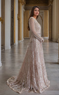 Embrace luxury and sophistication with our stunning net embroidered blouse, embellished with shimmering pearls, intricate cutdana, and playful tassels. Paired with an elegant embroidery tail lehnga adorned with luxurious cut dana, opulent pearls, and dazzling crystals. Complete the look with a duppata featuring a scalloped embroidered border, adorned with sparkling sequins, delicate pearls, and detailed cut dana. Elevate your style with this luxurious ensemble that radiates elegance and charm.