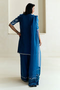 A striking teal blue ensemble that pairs bold embroidery with timeless elegance crafted for occasions that call for refined statement.